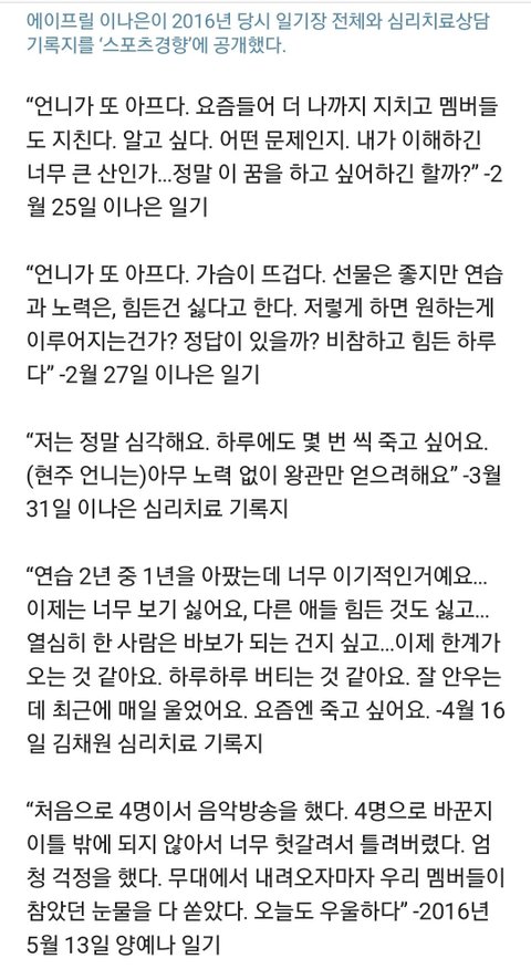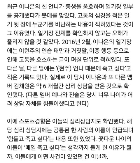 에이프릴이 이현주 왕따설에 대해 최근 인터뷰 한 내용
