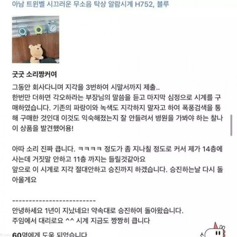 구매자 승진까지 시켜주는 무소음 탁상시계