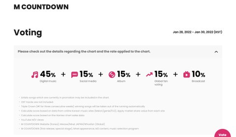 해외유니라 엠웨이브에 투표하러 갔다가 순위 산정 기준 봤는데 방송점수가 엠카 첫방이나 스페셜 무대, 엠넷 출연, M2컨텐츠, 선곡프로그램 (유니들이 말했던 신청 프로그램인거 같음 아니면 말해줘) 이라고 되어있더라구