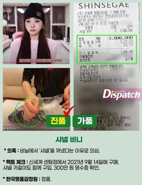판에서 제일 뜨거웠던 샤넬백이나 샤넬목도리나 비키니, 운동화, 구찌 전부 진품이네? ㅋㅋㅋㅋㅋ 웃기다 다들 명품 잘 아는 척 하면서 이건 저렇고 저건 어때서 100% 가품이라고 확신하더니 ㅋㅋㅋㅋㅋㅋㅋㅋㅋㅋ