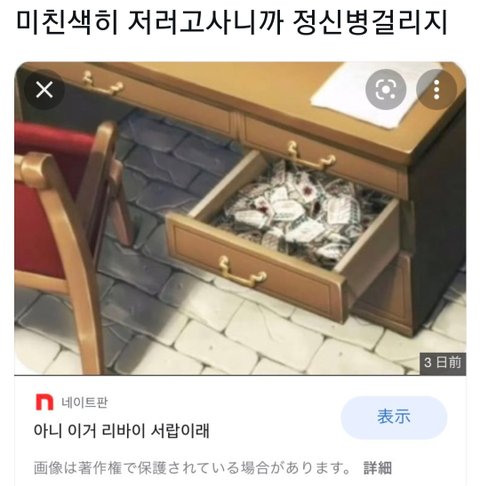 아니 ㅣㅋㅋㅋㅋㅋㅋㅋㅋㅋㅋㅋㅋㅌㅌㅌㅋㅋ 동료들 조카 아끼고 동료들 어케 죽은지 다 아는데 저 뱃지를 다 모아놓고 있으면 정신병이 안걸리겠냐고ㅋㅋㅋㅋㅋㅋ 진짜 내가 리바이처럼 모아놓고 있었으면 볼때마다 눈물 콧물 다 흘린다