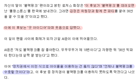 >윤석열 : "이런 식으로 아이돌 이용하는 것 옳지 않다", "블랙핑크 수호할 것"