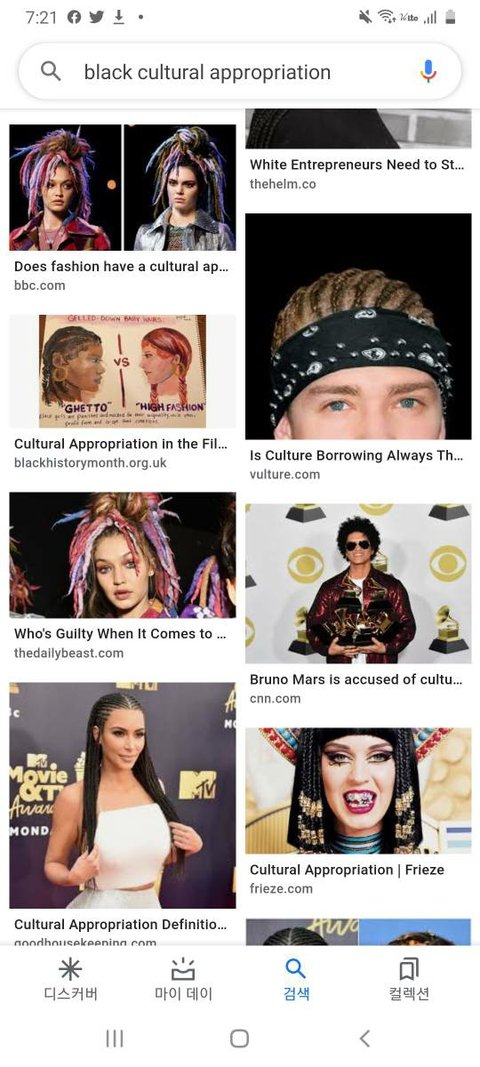 이 문화가 어떤 역사배경이 있었는지도 모르고 흑인들에게 어떤 의미를 가지고 있는지도 전혀 모르는데 그냥 힙하고 특이한 머리라고 생각해서 그저 하나의 유행으로 소비하고 있는거임
