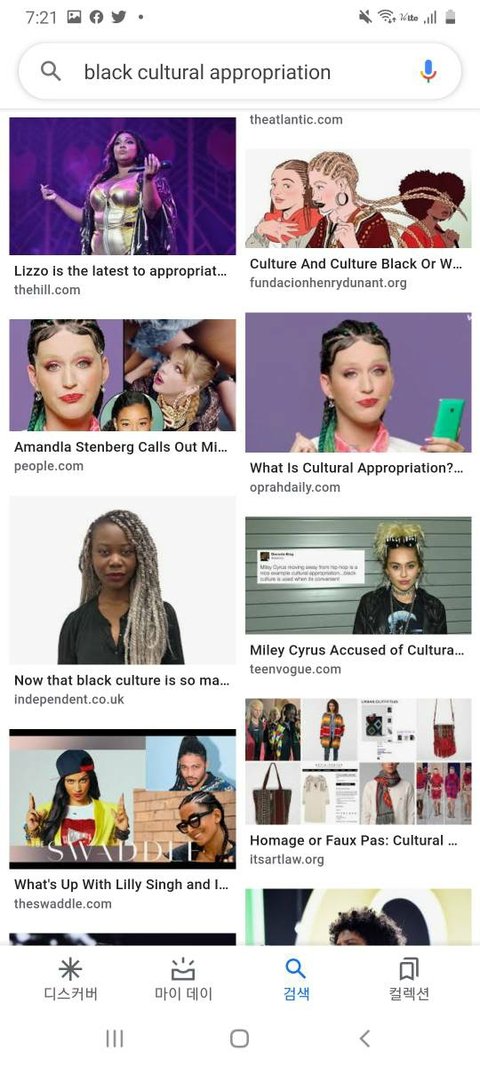 만약 정말로 흑인문화를 사용하고 싶으면 그거에 대한 역사지식이나 의미를 완전히 깨닫고 공부한 후에 흑인들한테 흑인문화 존중하고 역사지식 완전히 이해해서 좋은 의미로 사용하는거고 알맞는 방법으로 박스브레이즈 하거나 하면 culture appreciation(문화적 존중의 의미) 로 흑인들이 자기 문화 존중해주었다고 고맙다고 해줌...