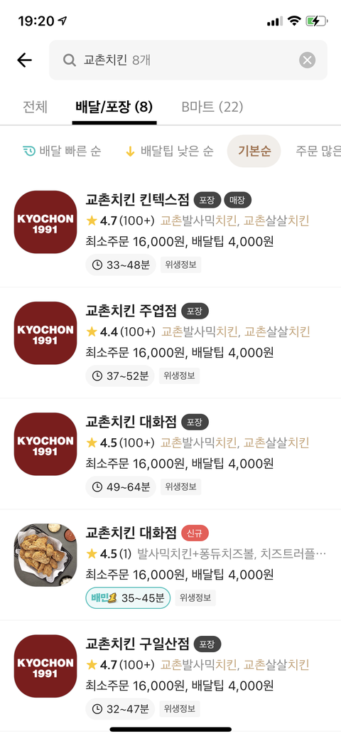 우리 동네만 이래? 미친거아니야? 참고로 거리 1km도 안나오는곳도 지금 고정 4천원이야 솔직히 나 삼천원까진 눈감고 시켜먹거든? 이건 좀 아닌거같은 4천원은좀.. 그래서 진짜 교촌 먹고싶은거 바로 드랍함 미친구아냐? 거리상관없이 전부 사천원인거보니까 교촌자체에서 인상한거같은대 미친거아님? 우리지역만 이래? 누가시켜먹우진자