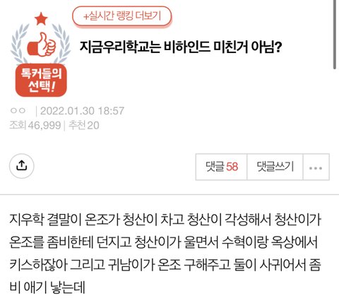 나 지우학 이제 보려고 하는데 어제 결말이랑 장르가 bl로 각색됐다고 들어서 헐 미친건가 했음