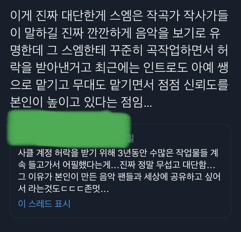가수가 음악 관련해서 적극적으로 활동하려해도 막는 슴을 보니 이건 사클이지만 톄용이가 회사에 대해서 어느정도 답답함도 느낄 수 있을거같은 그런