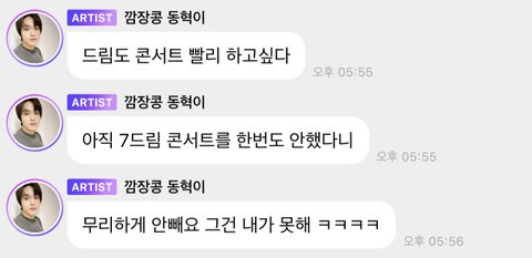 어제 동혀기 버블 5분뒤에 드림애들한테 혼난다고 했는데