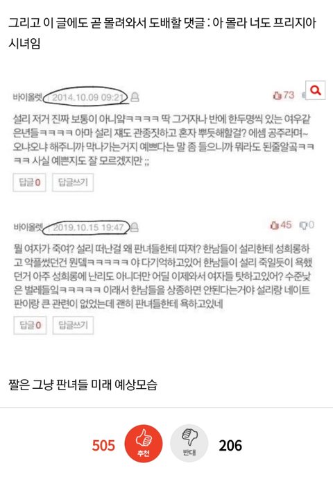 어딜가든 악플다는 한남들 천지인데 이악물고 여자한테 덮어씌우기 ㅋㅋ 진짜 여자탓도 작작 해야지 ㅋㅋㅋㅋㅋ