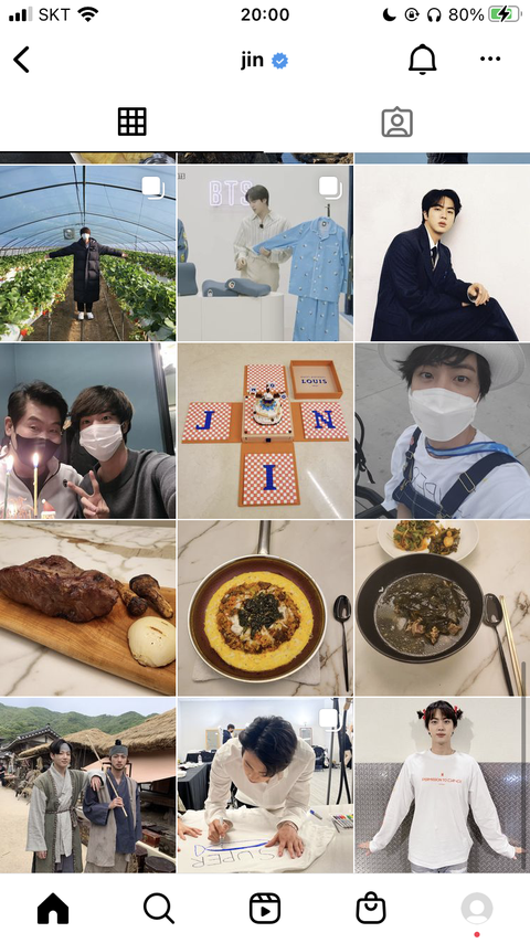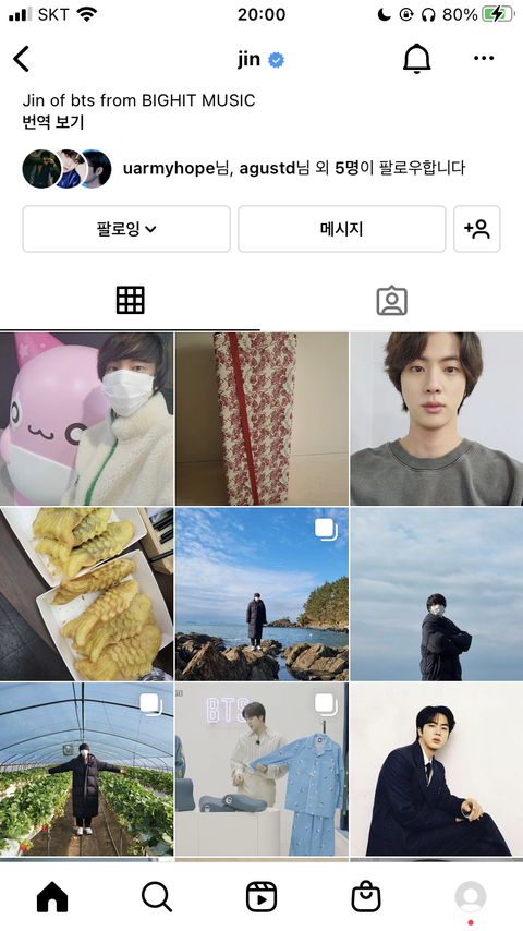 방탄 진 인스타 약간