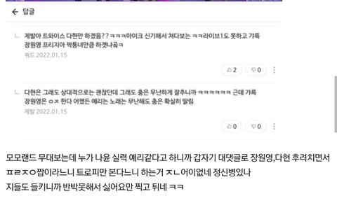 탈덕수용소도 1세대부터 슴빨던 씹즈니 7n년생이고 하이브랑 제왑,여돌은 아이즈원 출신들 엄청 싫어하고 다른계정 봐도그럼. 신기하게 이런 씹즈니들은 에스파는 엄청까고 싫어하고 주로 nct빨더라. 인터넷이 씹즈니들한테 잠식된느낌임 무섭고 소름끼쳐