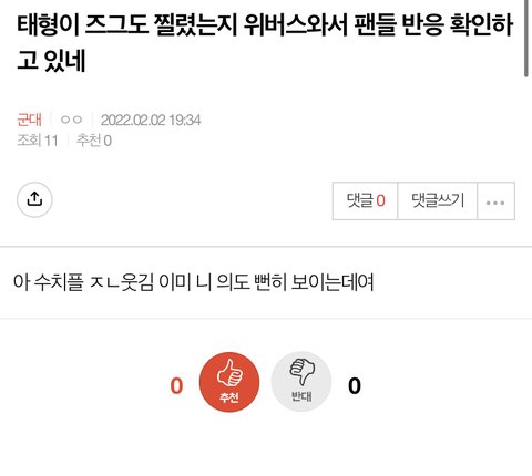 ⚠️조방⚠️ 태형이 즈그도 찔렸는지 위버스와서~