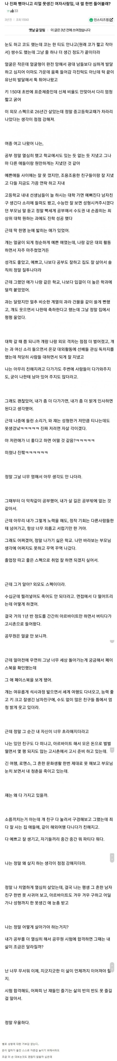 어느 못생긴 여자의 인생 썰