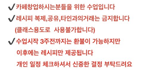 5. 수강생은 옛날일은 내가 알수가없으니 변경됐으면 작년까지는 수업용으로 레시피 판매했다고 블로그에 써줘야하는거 아니냐는 입장