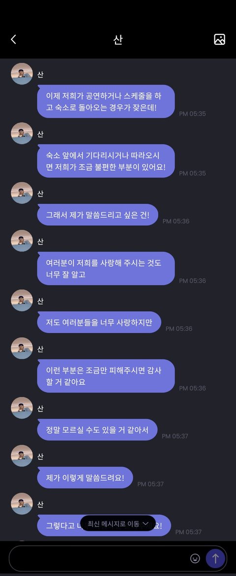 팬들이 비싼돈주고 보는 유니버스에서까지 이런말 할 필요가 있다고 생각함? 사생 심한건 회사가 처리해야할 일 아냐? 애먼 팬들 기분 나쁘지 않아? 내가 예민한거임?