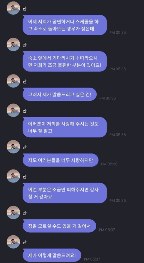 스케줄 끝나고 숙소 가면 앞에서 기다리거나 따라오는 팬분들 있다는데....