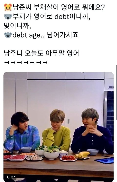 지민 : 놀러가면 슈가형이 밥 해줍니다