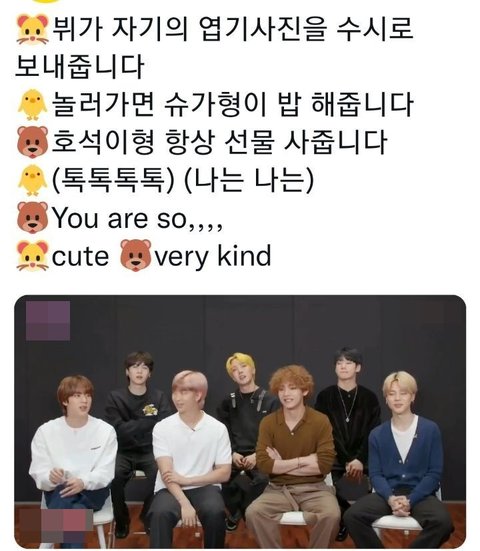 진 : 뷔가 자기의 엽기사진을 수시로 보내줍니다