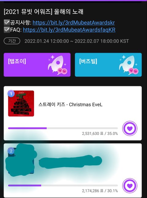 뮤빗 올해의 노래 2/7까지