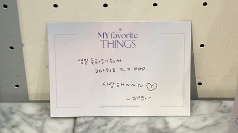 미연이는 네버버랑 같이 생축파티 하고 싶다고 해서 같이 축하도 하고 케이크도 먹었음! 게다가 생카도 직접 돌아서 인증샷도 찍어주고 싸인도 해주고 감사메세지도 남기고 갔었음...