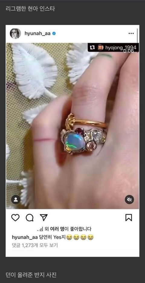 현아 던 프러포즈 반지 머지,,