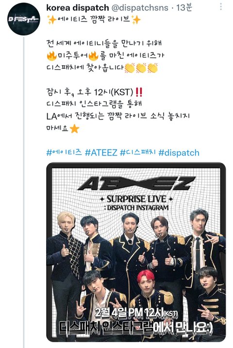 LA에서 진행하는 미디어데이에 디스패치 인터뷰도 예정되어