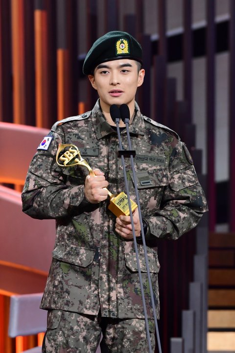 (군복무 중 지난 연말 시상식 신인상 수상하러 나옴)