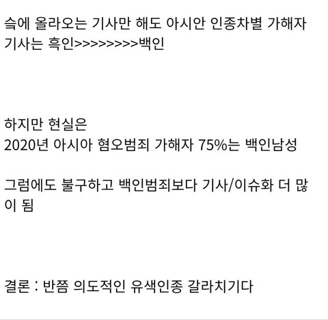 현실은 흑인이나 히스패닉의 범죄만 집중해서 이슈화