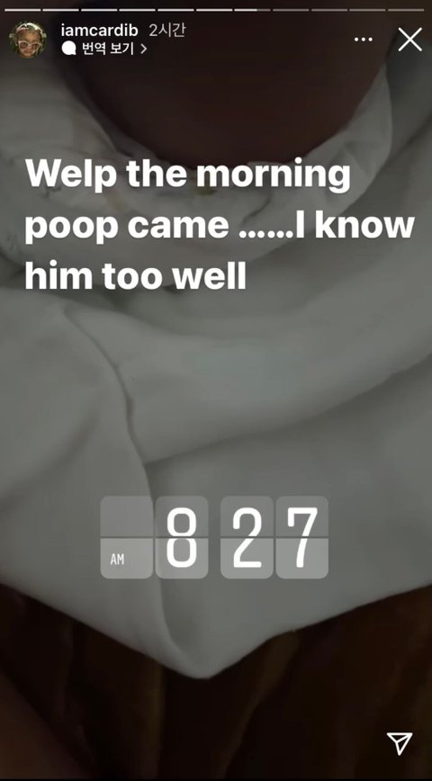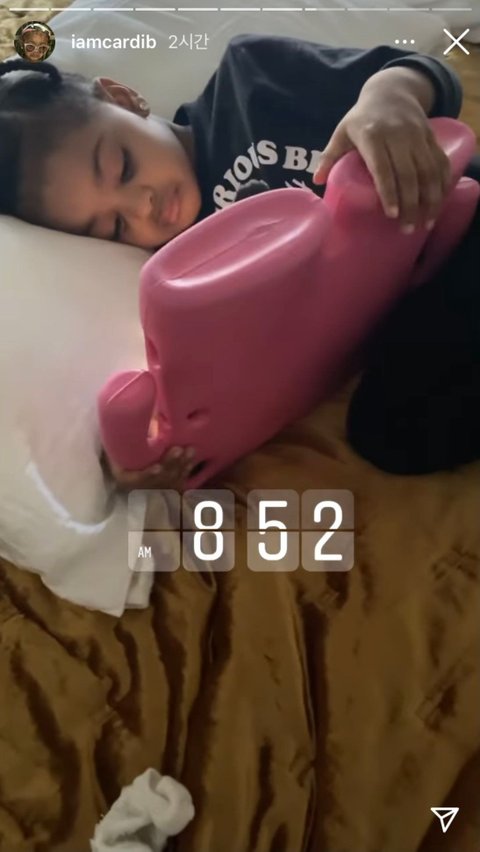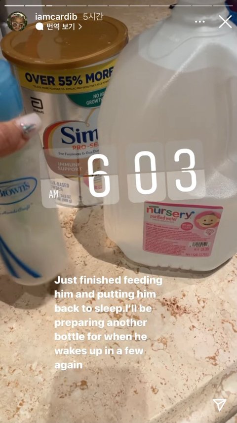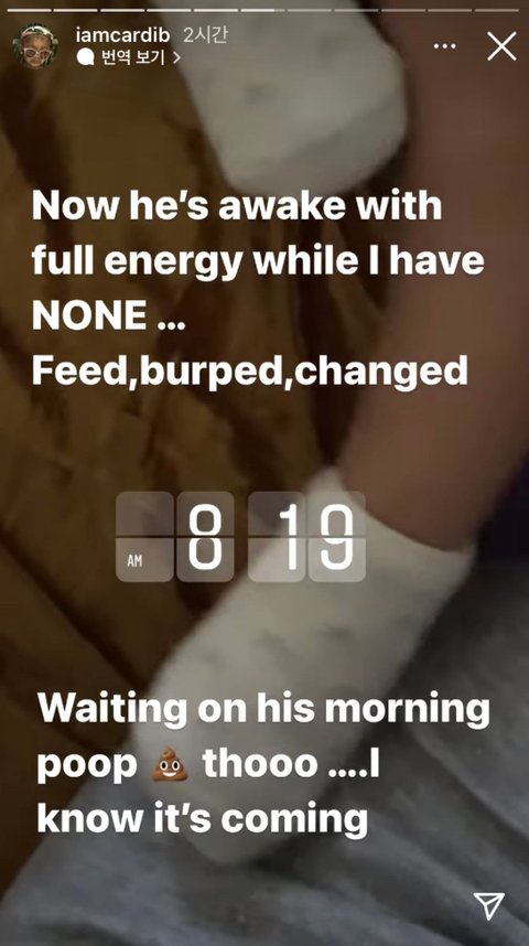 but 카디비는 먹이고 트림시키고 기저귀 갈아주느라 에너지 바닥