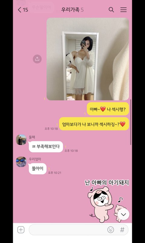 우와... 뇌구조가 어떻게 생겨 먹었으면 아빠한테 딸이 성적 매력을 어필하면서 엄마랑 비교하지? 완전 막장 집안이네. 그걸 또 공개하는 저 딸은 광우병 걸린 소를 잡수셨나....