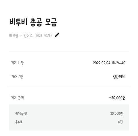 솔직히 귀찮아서 안하고 있었는데 총공팀 트윗보다가 시간 난 김에 벅스 아이디 2개 만들어서 보냄 그리고 이왕 아이디 기부까지 했겠다 총공팀 계좌 3마넌 보냈다..ㅎ 또 시간나면 지니 아이디도 기부할 예정!! 우리 힘내서 커하 찍자구~~~~