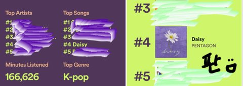 데이지 진짜 미친듯이 돌려들어서 스포티파이 개인결산에서 작년 한해 4번째로 가장 많이 들었던 노래라고까지 나와버린 쑥스러운 타팬입니다 ㅜ