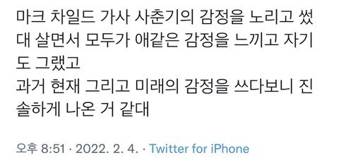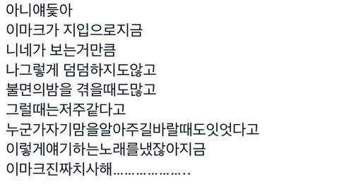 나 불면증 걸렸을 때 생각난다.. 2년 동안 진짜 힘들었는데 맠쿠가 적은 가사 곱씹어 보니까 너무 공감 돼서 눈물 났어