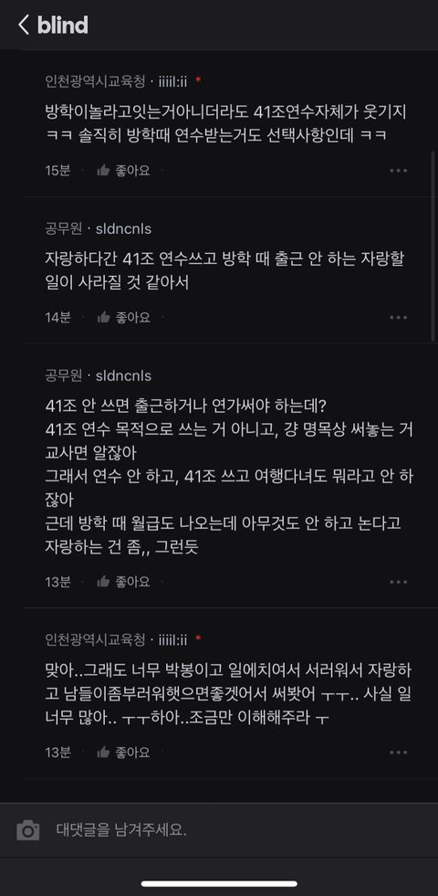 월급 다 받으면서 방학 보내는거 특권인줄 알면 가만히 있지 본인의 권리라고 생각하고 자랑하는게 어이가 없어요