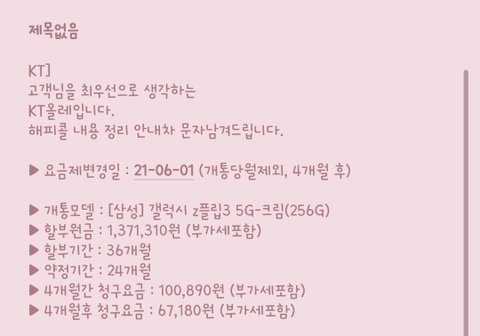 어쩃든 28일 오후 개통철회 하기로 되었고, 업체에서 전화가 왔는데 저 요금제가 제가 기존에 쓰던거보다 비싼 요금제라서 하루치 요금이 일할계산되서 만원 이하의 금액이 부과될거라했습니다.