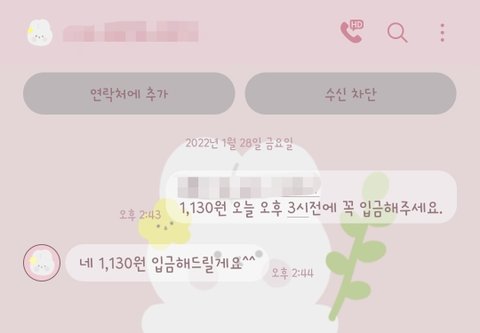 그러면서 그 일할 요금이 1,130원이던데 자기가 입금을 해줄테니 계좌를 보내라길래 알았다. 했는데 그 1,130원을 강조를 하면서 여러차례 말을 하더라구요. 1,130원을..(물론 1130원 없는거 아니지만 저쪽잘못으로 느껴져 3원도 내기 싫었어요.)