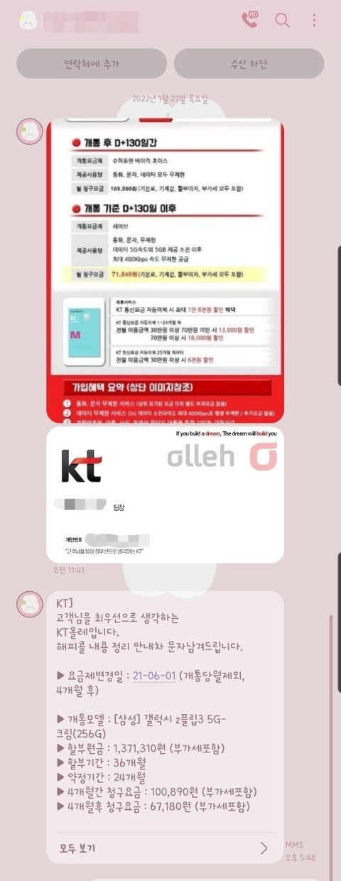 (kt고객센터 확인하니 제가 개통했던 대리점과도 다른 대리점에서 전화를 한거로 확인이 되었습니다.)