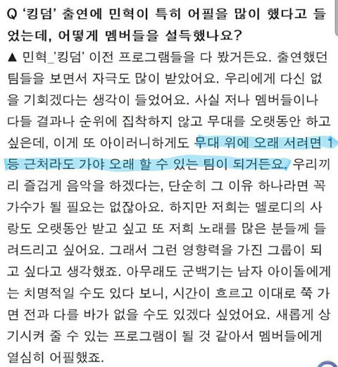 큐브도 결국 수익을 내기위해 존재하는 집단이잖아.. 오랜만의 완전체 성적을 보고 앞으로의 가치와 방향을 판단할 가능성이 크다고 봐 비투비가 서로를 사랑하는 마음은 알지만 현실은 그 마음만으로 다 할 수 없는 부분도 있잖아 큐브에 신인 그룹은 계속 늘어날 거고 투자 할 수 있는 자본은 한정적이니까... 정확한 워딩은 기억 안나지만 민혁이가 어디선가 롱런하려면 그래도 1등 근처라도 가야하는 것 같다고 말했던 거 생각난다...
