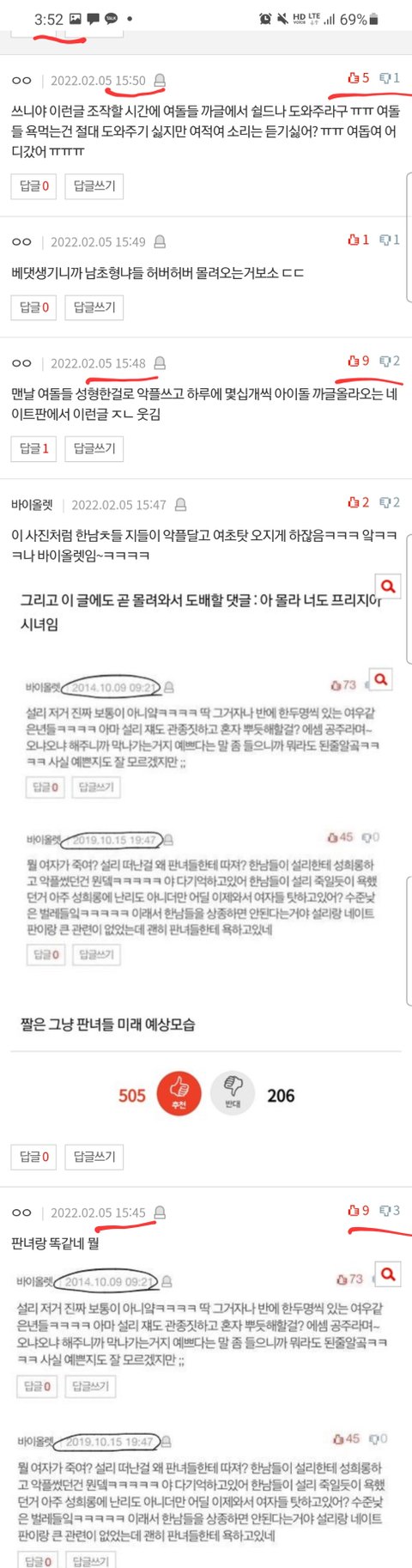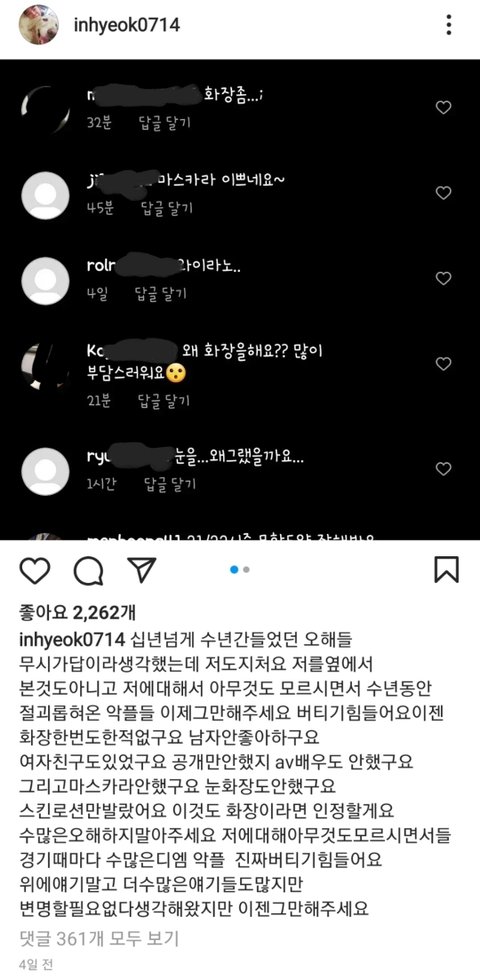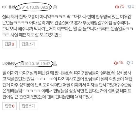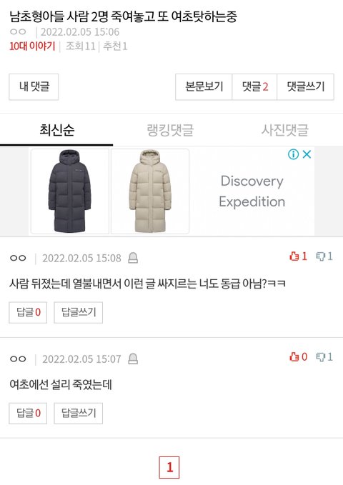 봐 ㅋㅋ 글 올리자마자 이런댓글 달리잖아 ㅋㅋㅋㅋㅋ 남초 악행 쉴드치려고 논지흐리는 댓글 담ㅋㅋㅋ 진짜..니네가 그러고도 사람이냐? 안봐도 잼미한테 악플달던놈들 일듯