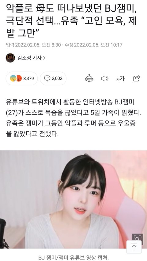 여혐으로 bj잼미님도 죽게 만듦.