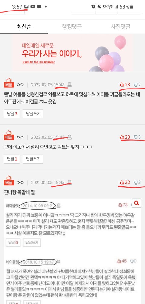 남초형아들 베댓 조작하는중~ㅋㅋㅋㅋ 딱 걸렸쥬?ㅋㅋㅋ 추천수 순식간에 올라가노 ㅋㅋㅋ