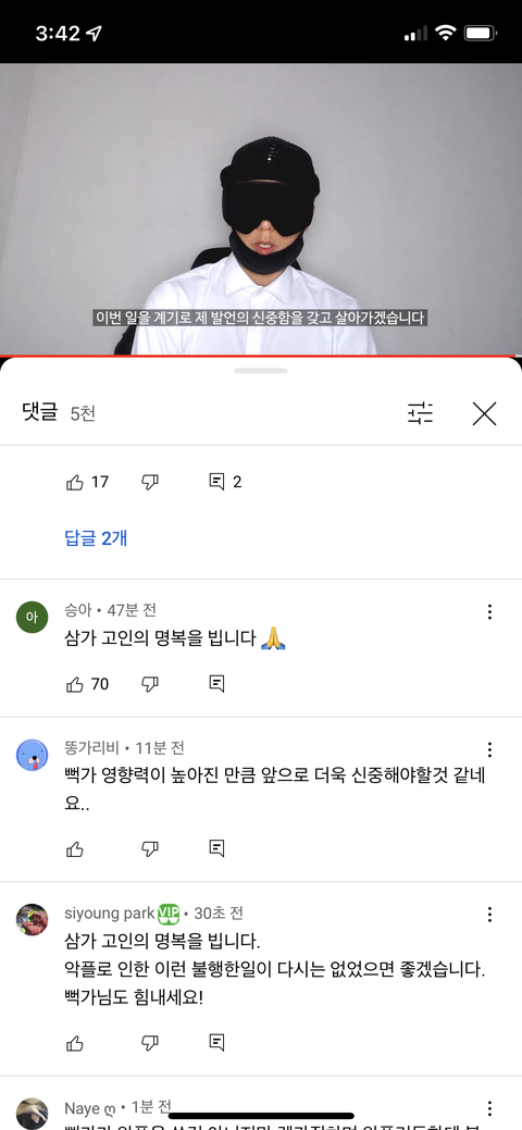 되려 뻑가님 힘내세요 따위의 댓글들만 있음