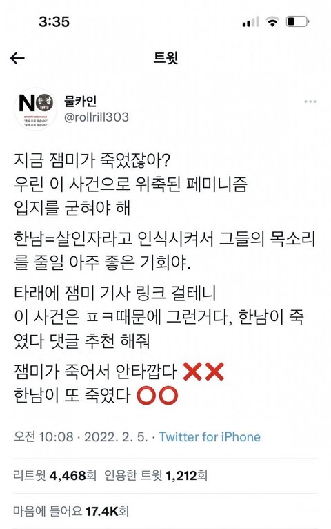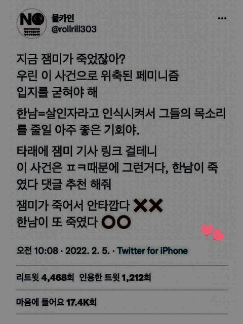지금 남초에서 잼미님 사건으로 조작중임