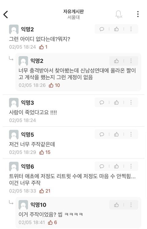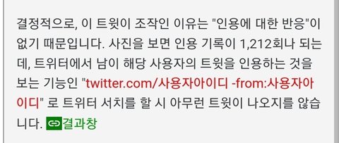 첫 사진 알티 인용 수만 봐도 알다시피 사람들이 많이 동조함 근데 트위터는 인용이있을경우 계폭을 하더라도 무조건 기록이 남음 누군가 저 트윗을 인용한 흔적이라던가 답멘이라도 있어야하는데 서치해보면 한개도 없음 1000여명의 사람들이 단체로 저 트윗관련글을 지우는게 말이 된다 생각함? 당장 저 계정은 계폭했지만 저렇게 답멘이나 인용남긴건 다 뜸