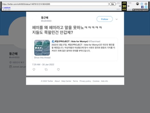 ++까도까도 계속 나오네 저 계정 페미 욕한 계정임 주작 확정남