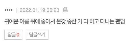 제니 카리나 주어만 바꾸는 걔가 엔터판 분탕 원인임 걔가 리사 로제 윈터 다 돌려까고 댓글에 홍은채 선글라스짤로 시작해서 릇 슴퀴 트와..