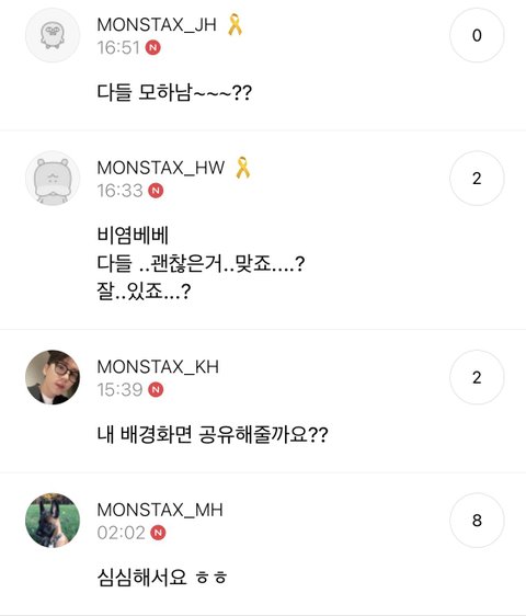 몬엑 멤버들 주말이라 심심한가봐