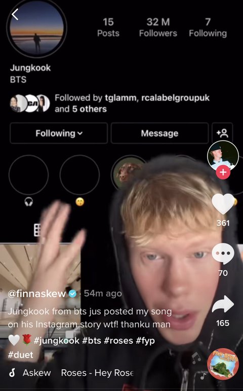 정국이가 인스타그램 스토리에 제 노래를 올렸어요! wtf! 고마워요 라고함 저렇게 좋아하고 고마워하는 모습보니 보는사람도 덩달아 기분좋음 노래도좋고