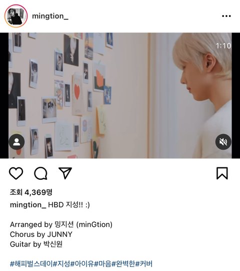 밍ㅈㅅ님 인스타에 지송이 올라옴