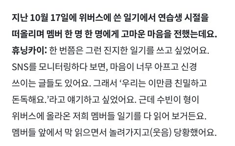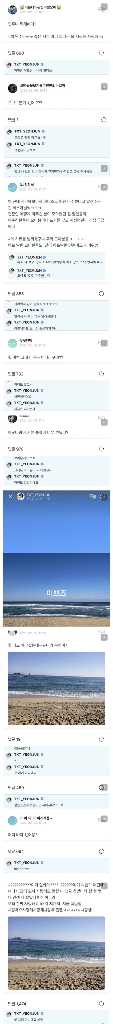 타돌 언급 미안하지만 타싸에서 ㅌㅂㅌ 멤버들은 팬들에 대한 거리낌이 전혀 없다고, 자기 실시간으로 강릉 ㅇㅇ해변이고 방금 해변 떠났고 이런걸 아무 걱정없이 다 알려주고 길가다 팬들 만나면 먼저 인사해달라고 하고 모든멤이 소통을 엄청 즐기면서 열심히 한단걸 봤거든?